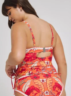 FIGLEAVES Frida Purple Floral Underwired Bandeau Tankini Top 34D