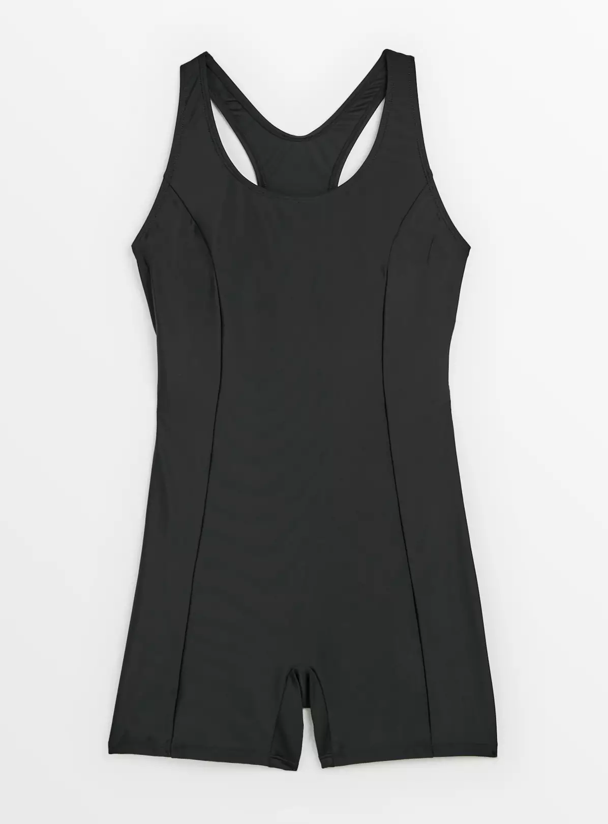 A comfortable choice for holidays and trips to the local pool, our black swimsuit comes in a shorts-style. It has a scoop neckline and features a side stripe design for a chic touch. An essential for your swimwear collection!
