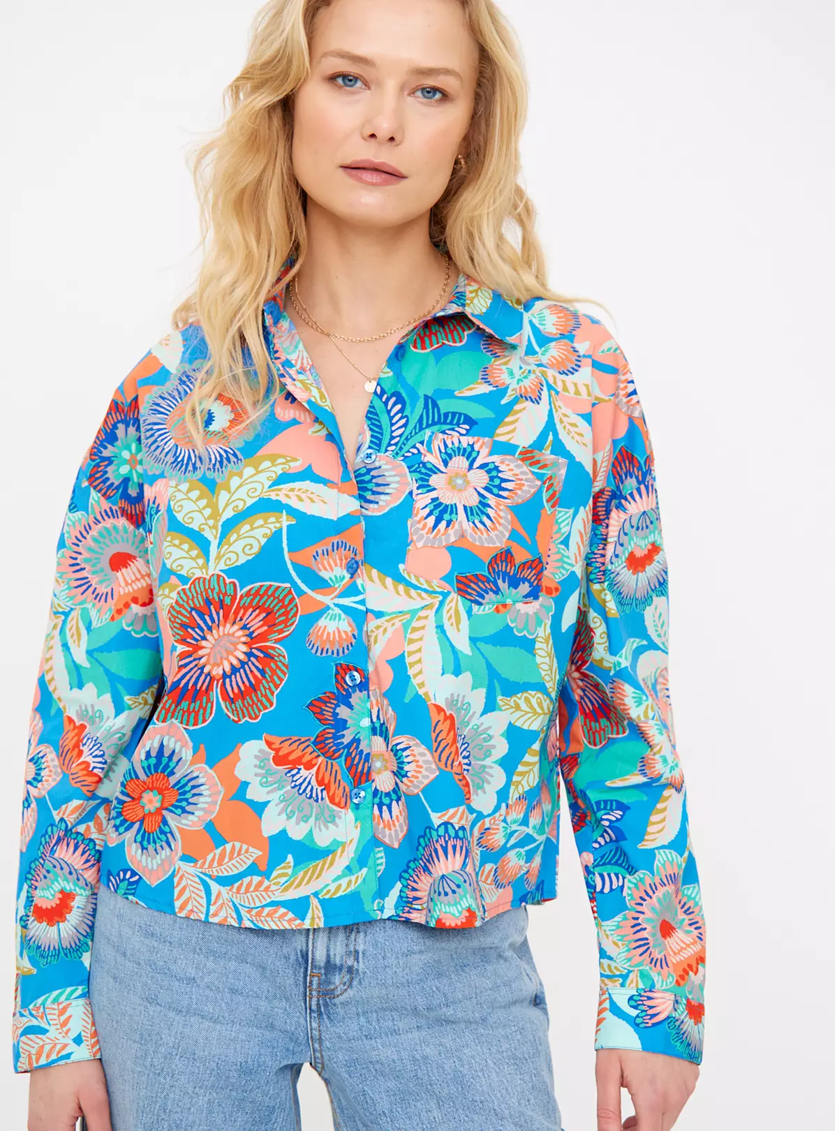 Make a statement this season in our bright boxy shirt. In a bold and beautiful floral print, it’s a definite staple for your spring wardrobe. For a retro look, team with a pair of wide leg jeans and a pair of trainers.