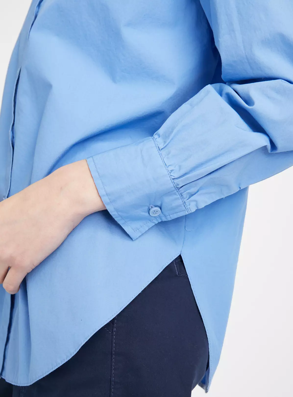 A poplin shirt is a timeless piece for your everyday wardrobe. Our blue shirt comes in an oversized fit, giving your outfits an effortlessly chic vibe. For a staple weekend look, team it with our mid wash denim jeans and a pair of ankle boots.