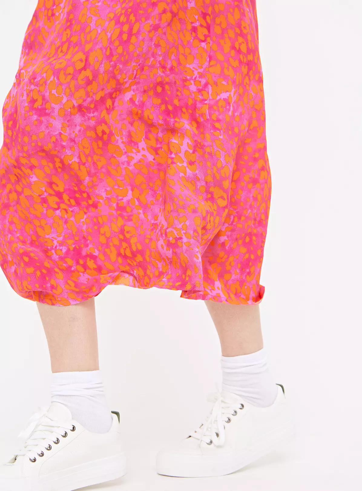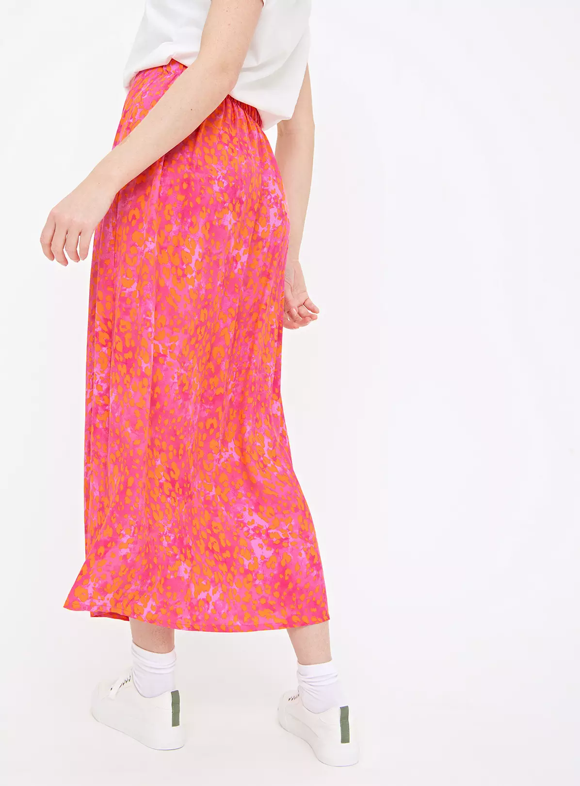 For a look you’ll love this spring, reach for our bright pink column skirt. In a midaxi length, it’s elevated by an all-over leopard print. Style it with a graphic print t-shirt for an effortlessly chic ensemble.