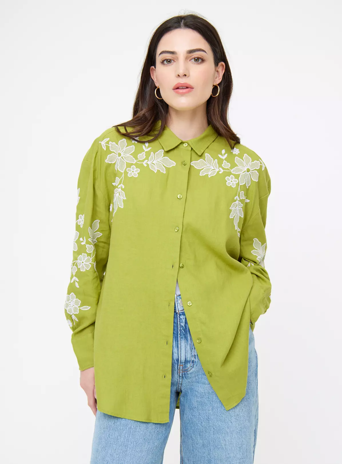 Be the first to review “Chartreuse Embroidered Relaxed Fit Linen-Rich Shirt 10” Cancel reply
