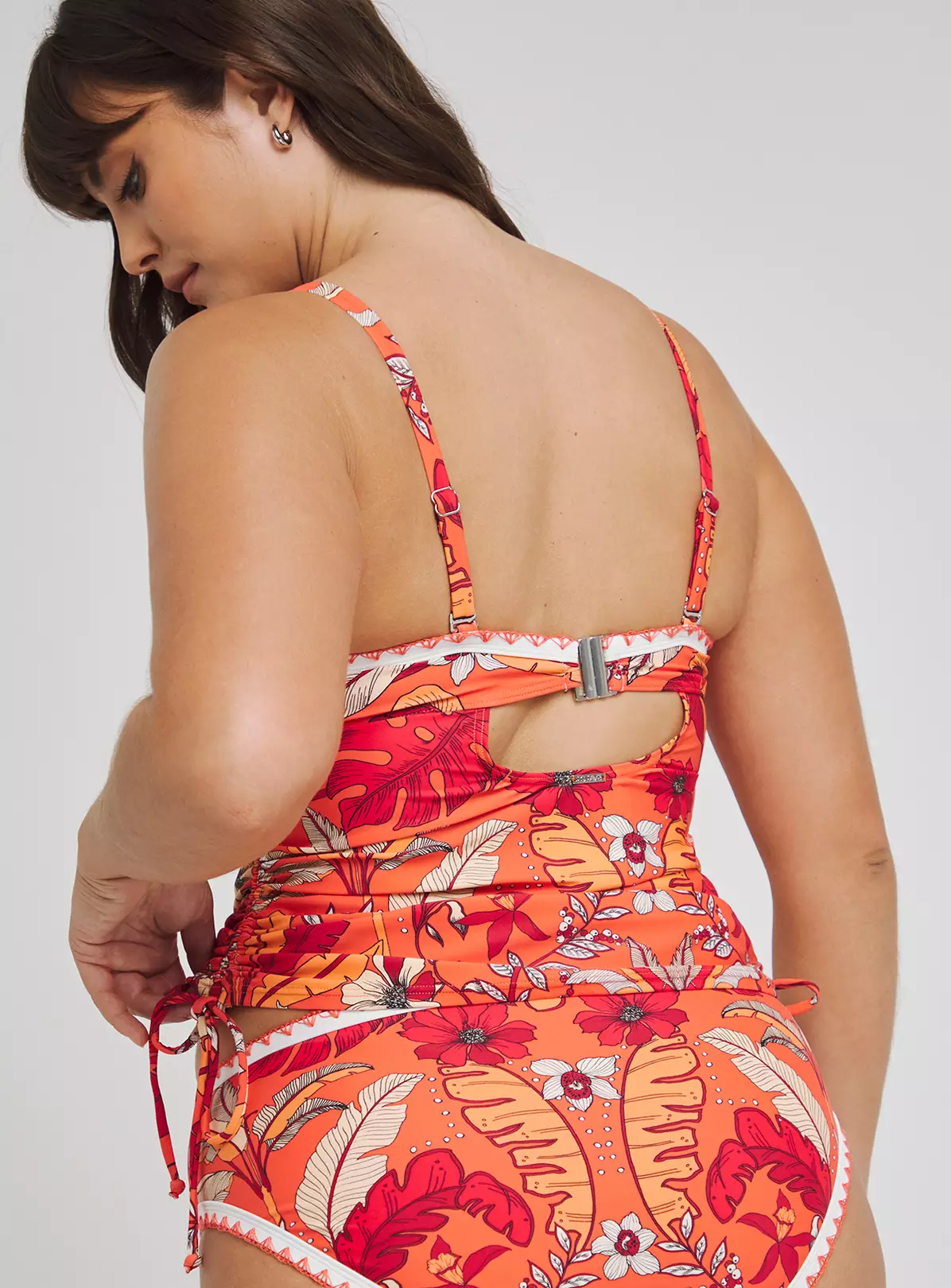 The Figleaves Frida Leaf Print underwired strapless tummy control tankini top boasts our much loved print and that signature crochet trim. With padded, underwired cups, removable straps. What’s more it has side ties so you can adjust the length to suit.