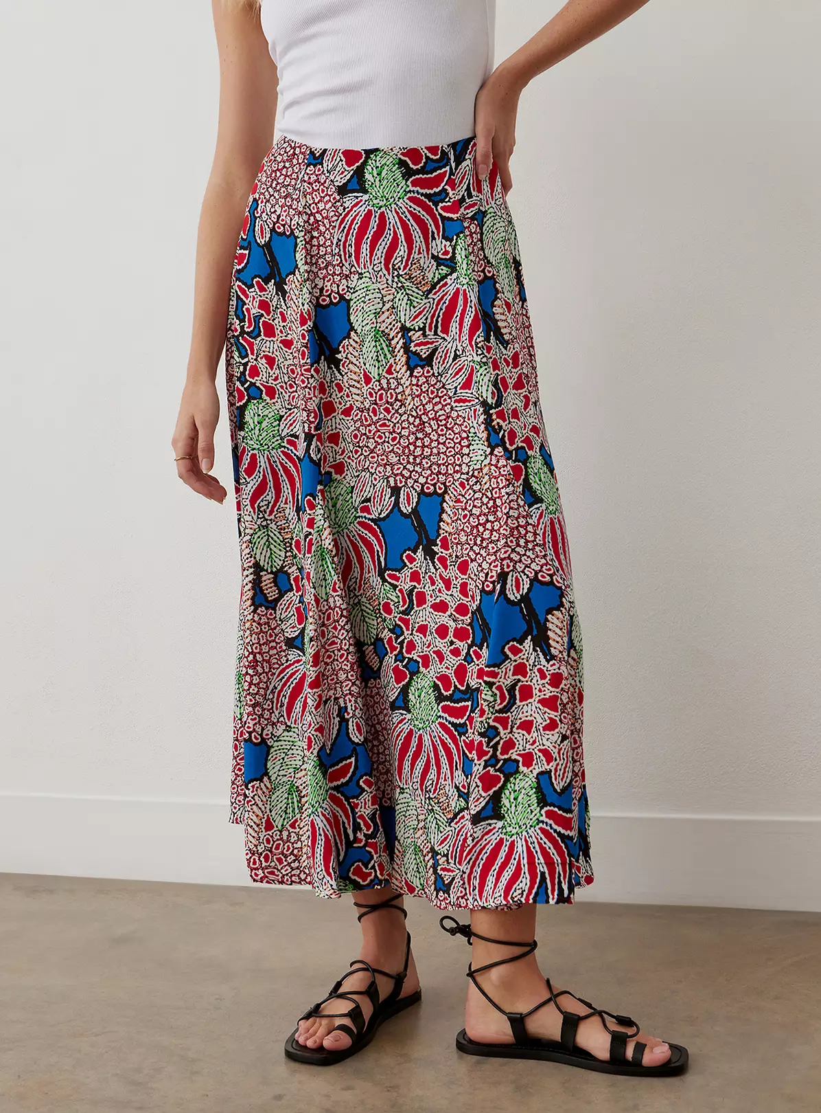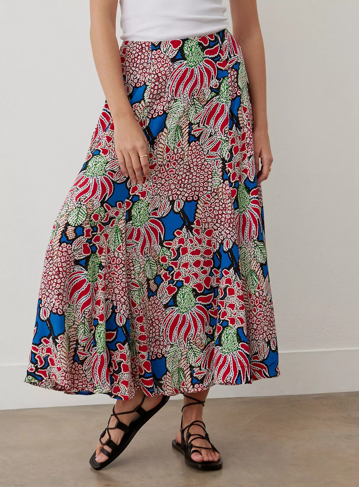 If you only have one skirt in your wardrobe, make it Jessie. A true classic, this floral skirt is cut on the bias in a midi length, so it falls fluidly over the body to create a flattering, form-fitting silhouette. A subtly elasticated waistband ensures comfort.