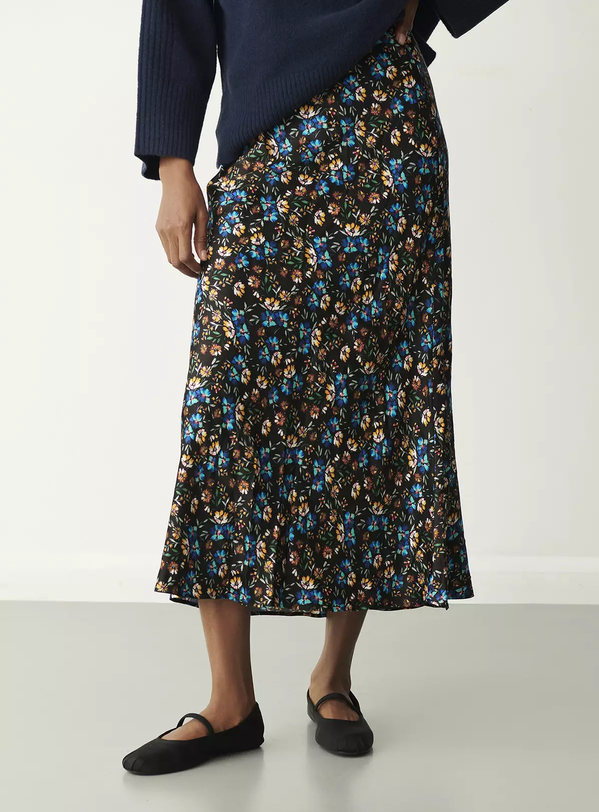 Midi in length and crafted from our signature satin fabric, Mandy is a floral print must-have for every wardrobe. With a tiered hemline that adds movement, she features zip and value fastening for a comfortable and flattering fit. Pair with our Lena blouse or a simple white tee.