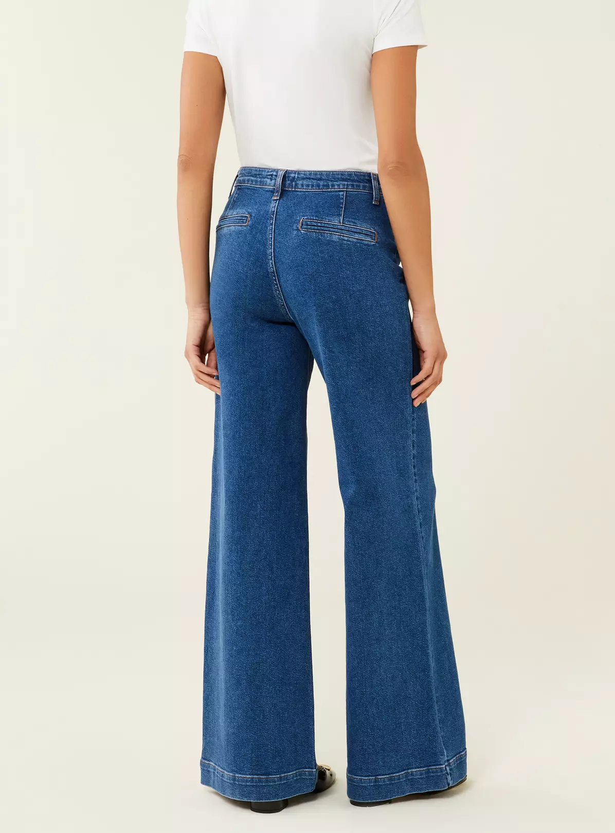 Our Tally Wide Leg Jeans adopt the super-flattering leg shape from the 1970’s. Made with our comfortable stretch denim that sits on the natural waist with a trouser-style zip and value fastening. Wear yours with a shirt and blazer for work, or with a ruffled blouse and boots for date night.