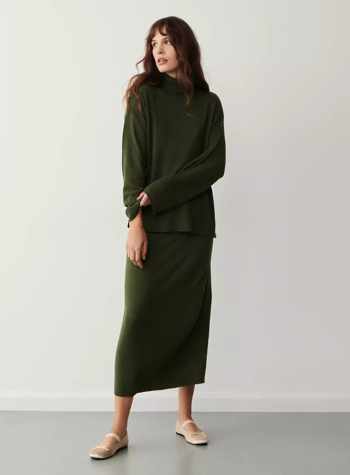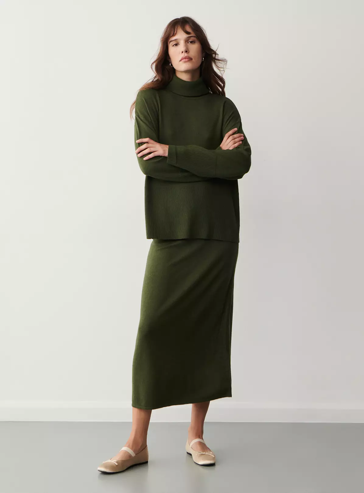 A much-loved addition to our knitwear range, Thea is a midi skirt that will keep you warm in style. With an elasticated, ribbed waist band she sits comfortably on the hips. Mix and match with our Sienna Roll Neck Jumper for the full look.