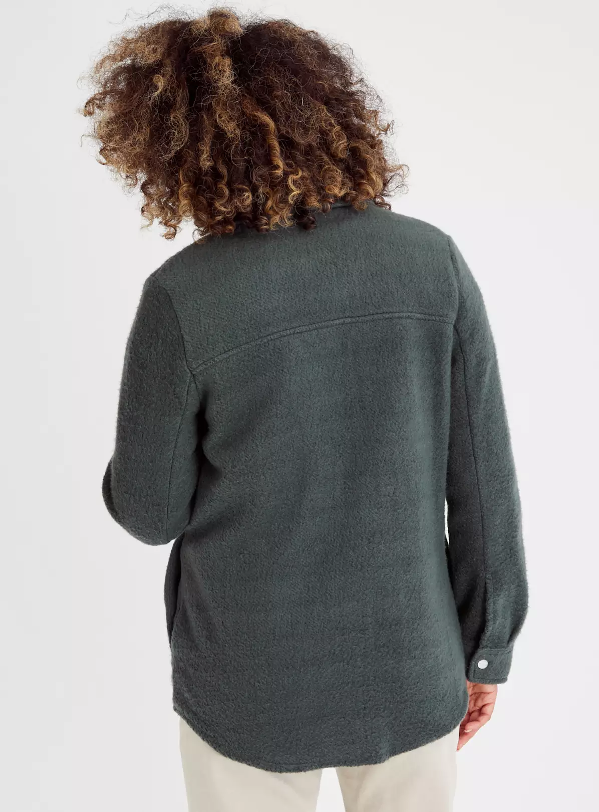 Layer up this winter with our gorgeous green overshirt. It features popper fastening and has 2 front pockets which give it a laidback look. Style it with a long sleeve top and denim jeans for an effortlessly chic weekend outfit.