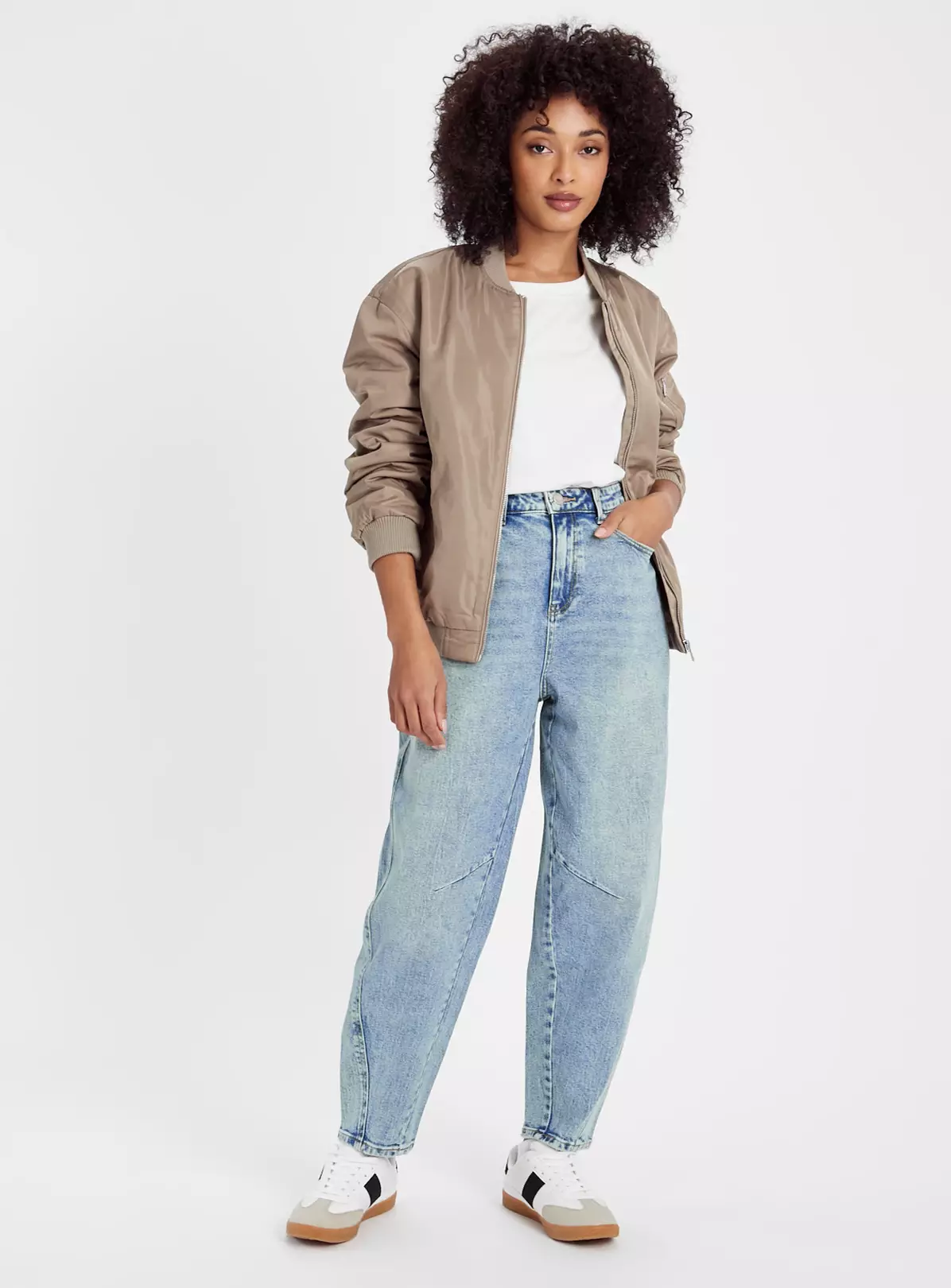 Elevate your look with our barrel leg denim jeans. In a light wash, they’re a chic staple for your casual collection. For the ultimate look, team them with a striped t-shirt and a pair of trainers.