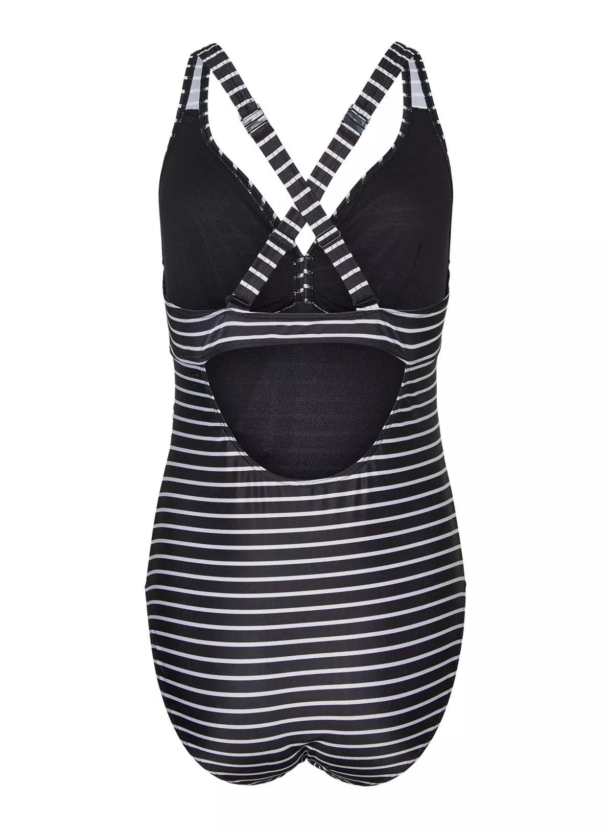Maternity knitted swimsuit in stripe with buckle at back & adjustable straps that can be changed into halterneck.