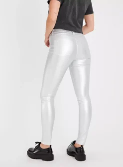 Stay on-trend with these statement silver jeans. With a metallic finish, these jeans come in a skinny fit which flatters your figure. Style with a white tee and heels for a staple seasonal look.