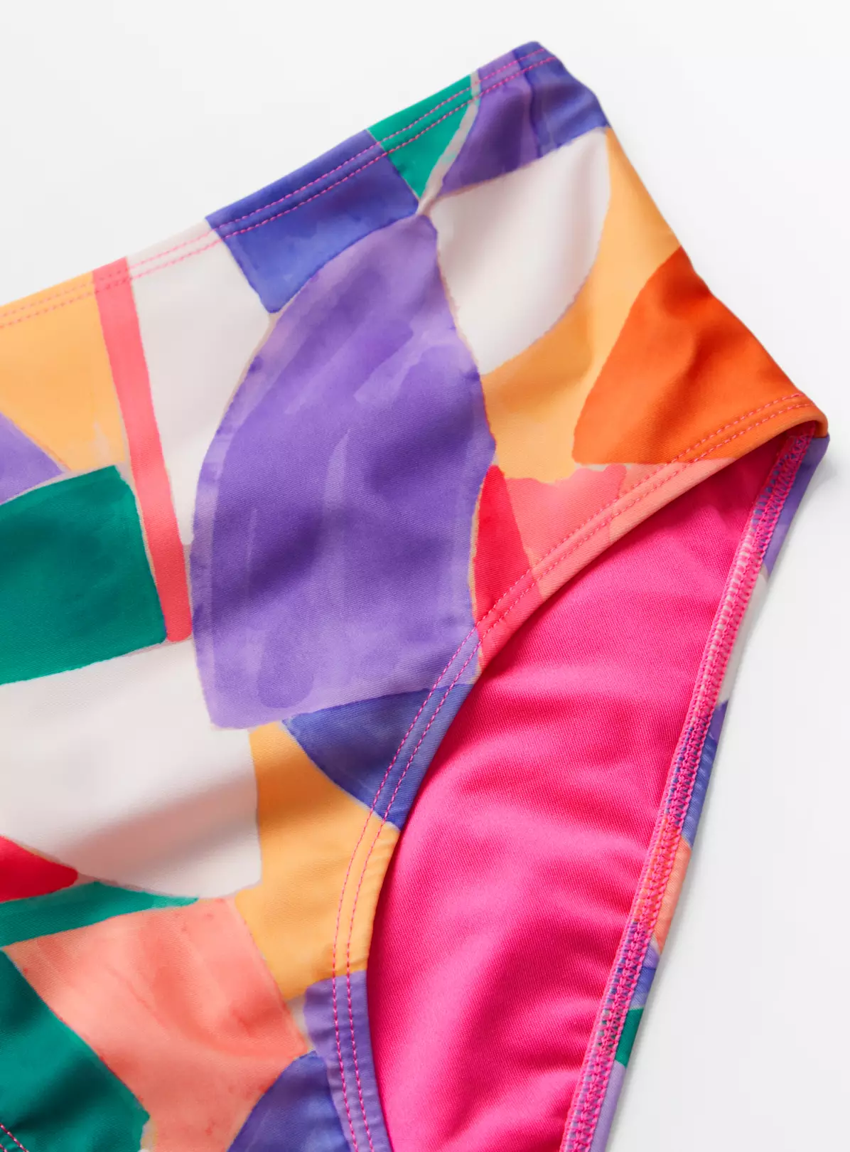 The ultimate bikini briefs for the beach, these bright and bold abstract print bottoms are perfect for your holiday. With a flattering high waist, style them with a pink bikini top and head to the sea!
