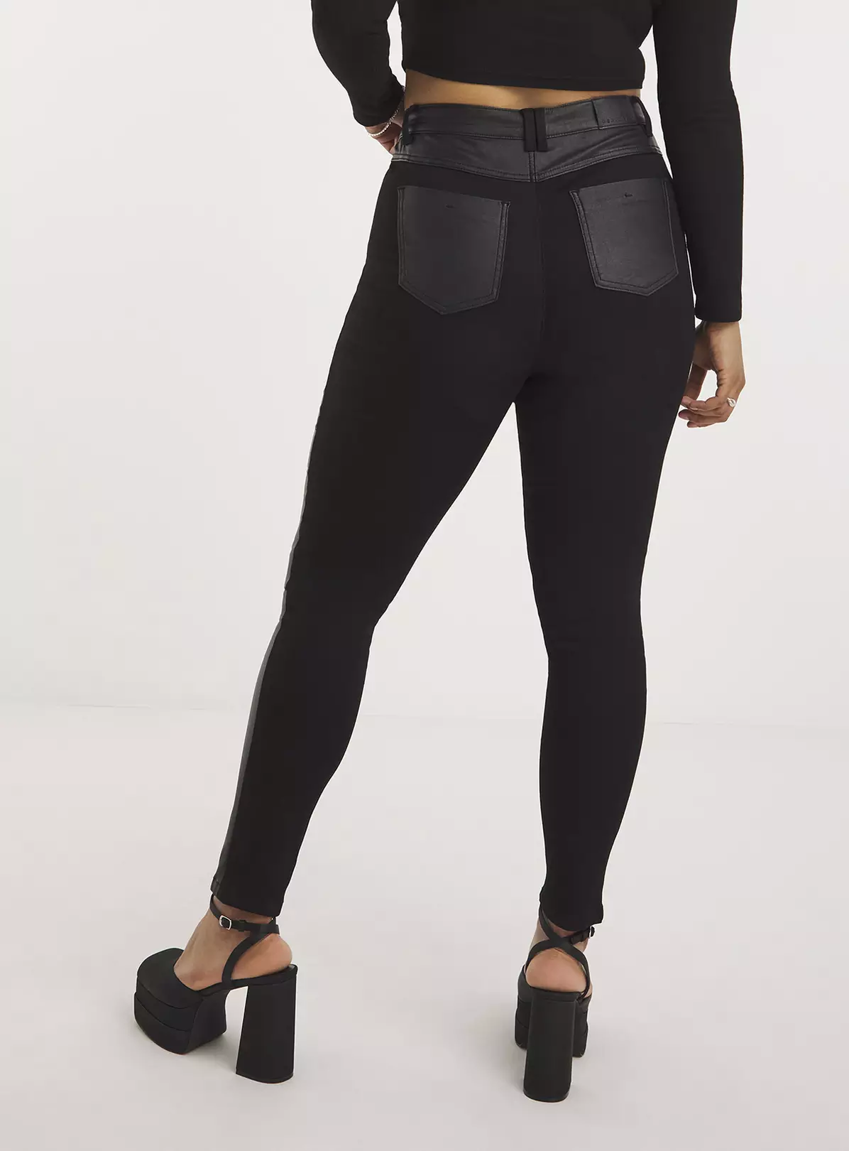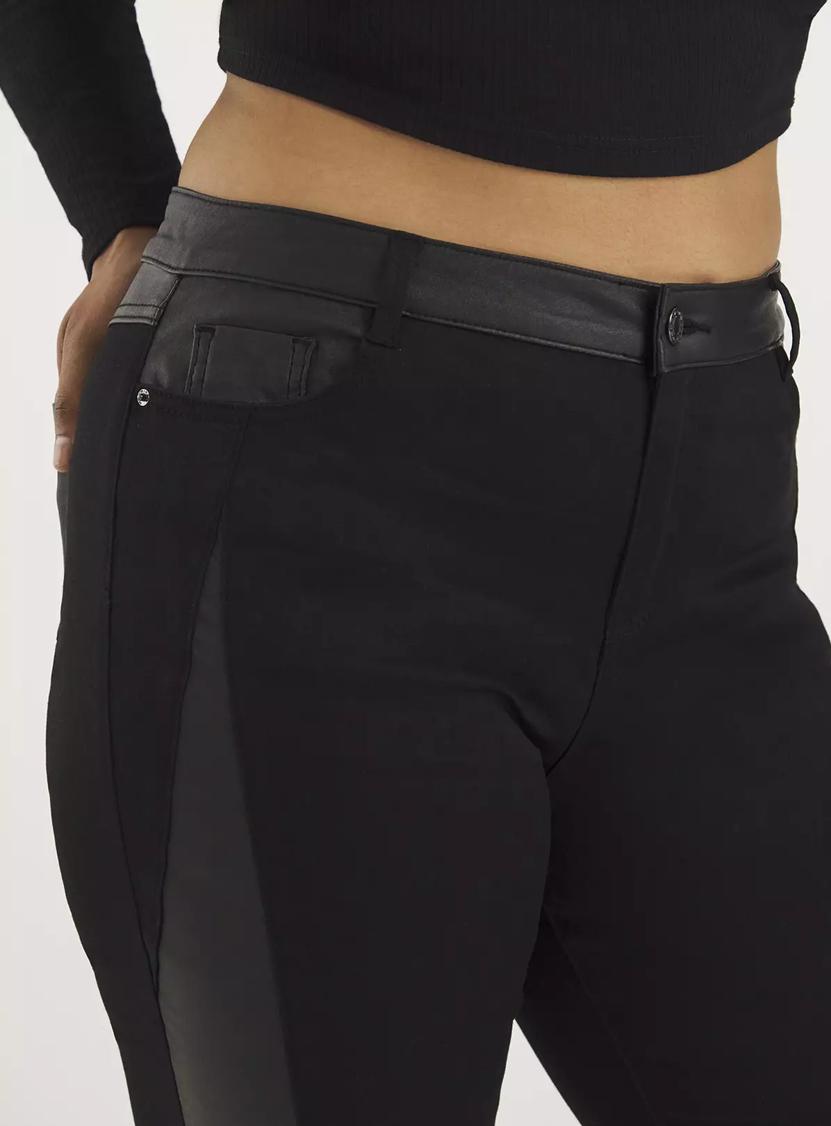These jeans are the perfect staple for day to night dressing! They feature a comfortable stretch denim fabric, coated panelling and pocket details, and zip and value fastening. Simply wear day to day with boots or dress up with heels and a lace top for a chic going out look.