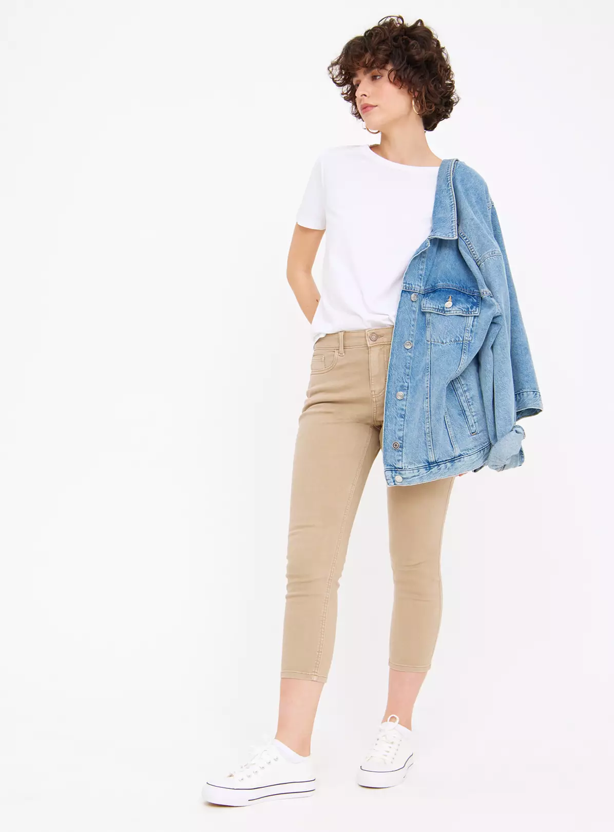 Our stone skinny jeans come in a cropped length that’s perfect for summer. Made from a cotton rich, stretchy fabric, they have all the usual pockets and look great with a plain white tee and denim jacket.