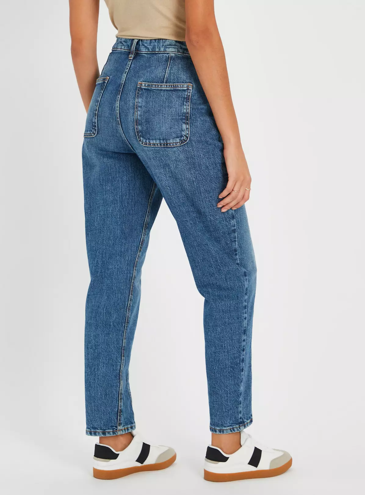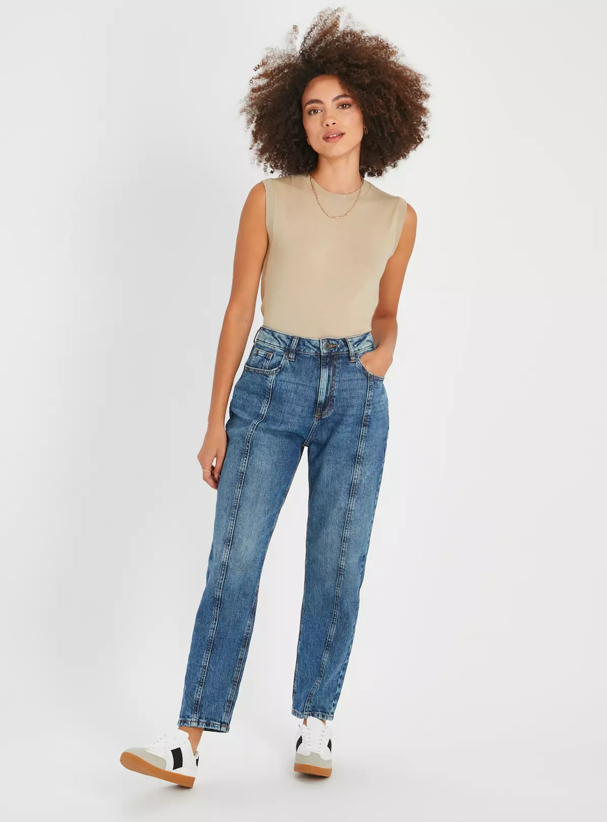 In a vintage wash, our denim jeans come in an on-season mom style with a panelled detail on the front. In a dark denim, they combine comfort with effortless everyday style. Finish your look by styling them with a grey tee and a pair of retro trainers.