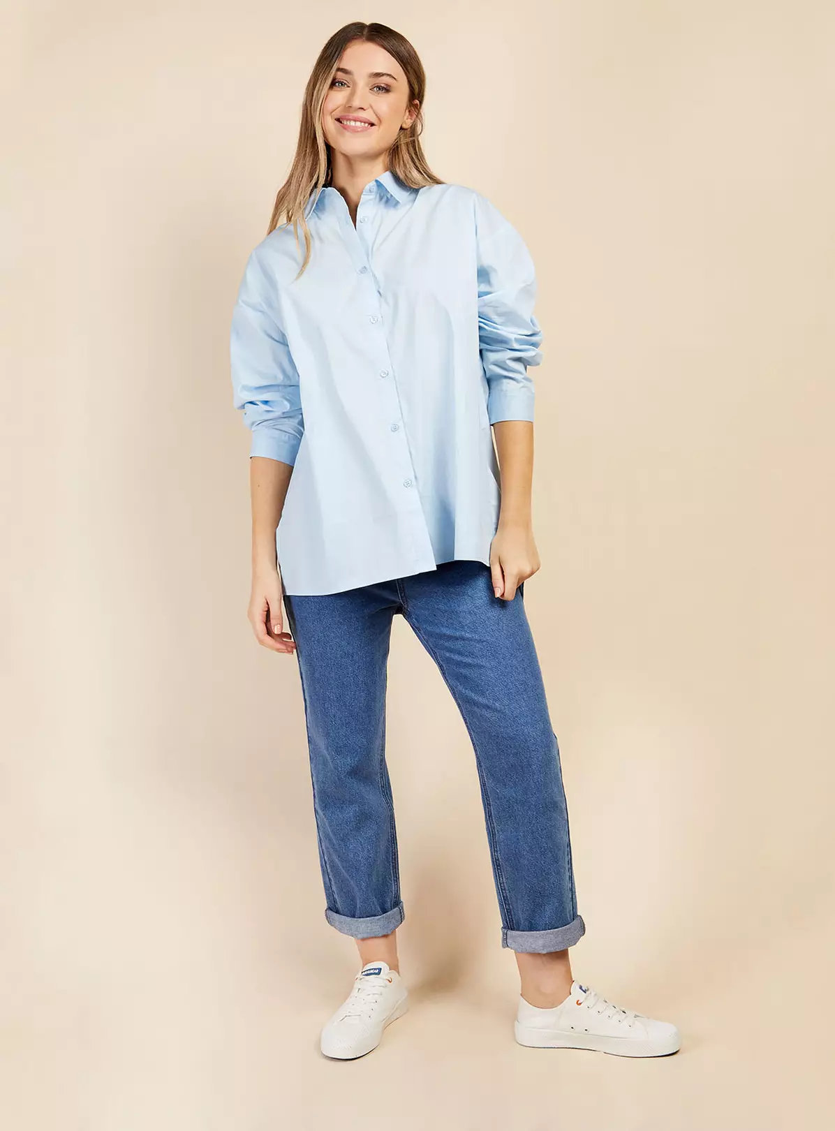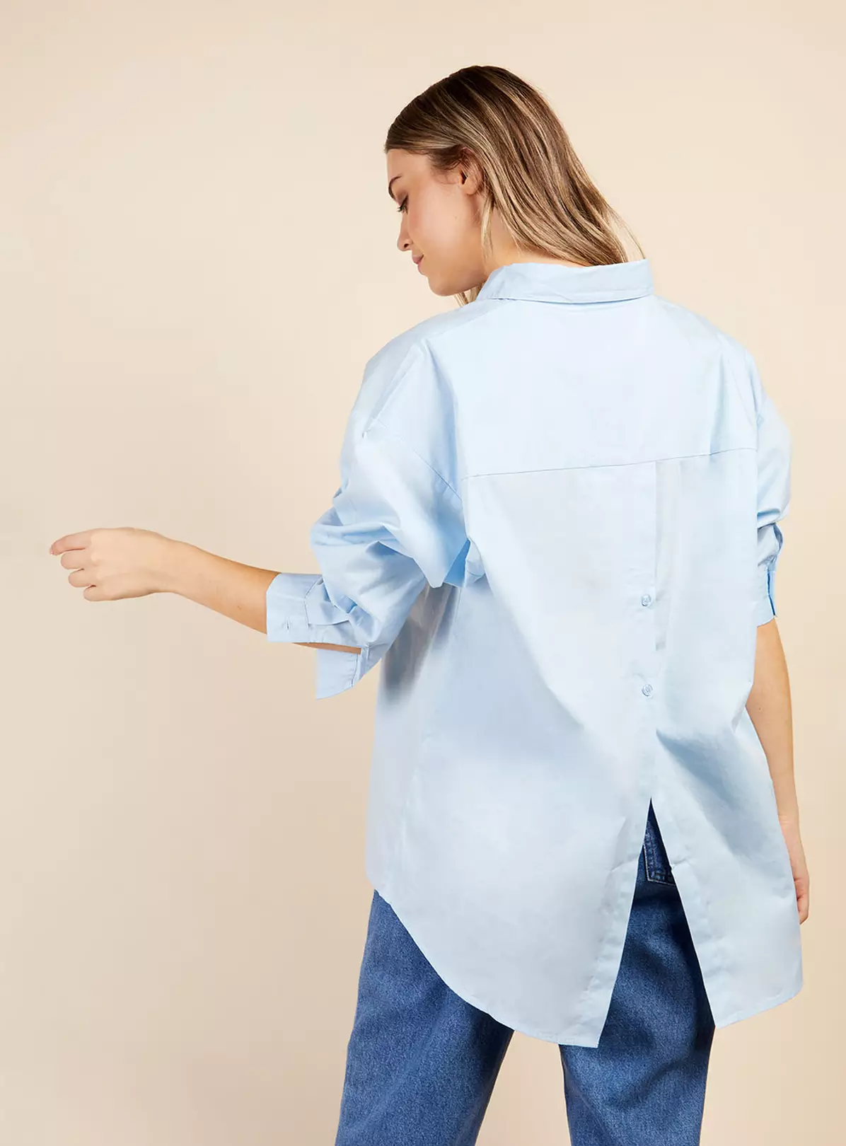 An on-trend twist on a classic wardrobe staple. a subtle split back design and relaxed, over-sized fit revamp the timeless cotton shirt. Throw on with your favourite denims and a biker boot for the ultimate in effortless styling.